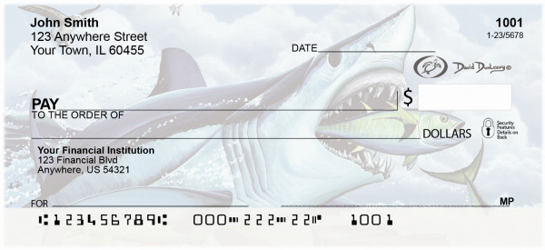 David Dunleavy's inspirational style graces these Fishermen's Checks. Showing his passion for undersea preservation, these checks will make a statement everywhere you use them. Scenes include sharks, marlin and other salt water fish.
