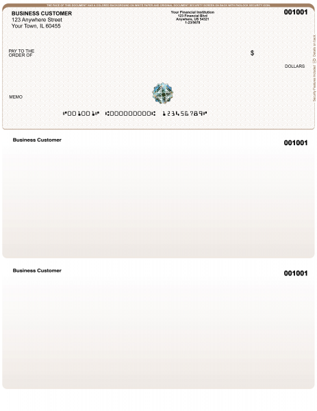Tan Safety Value Hologram Top Laser Checks are suitable to accommodate accounts payable, payroll, or general-purpose, and provides value-added security for your business using a hologram!